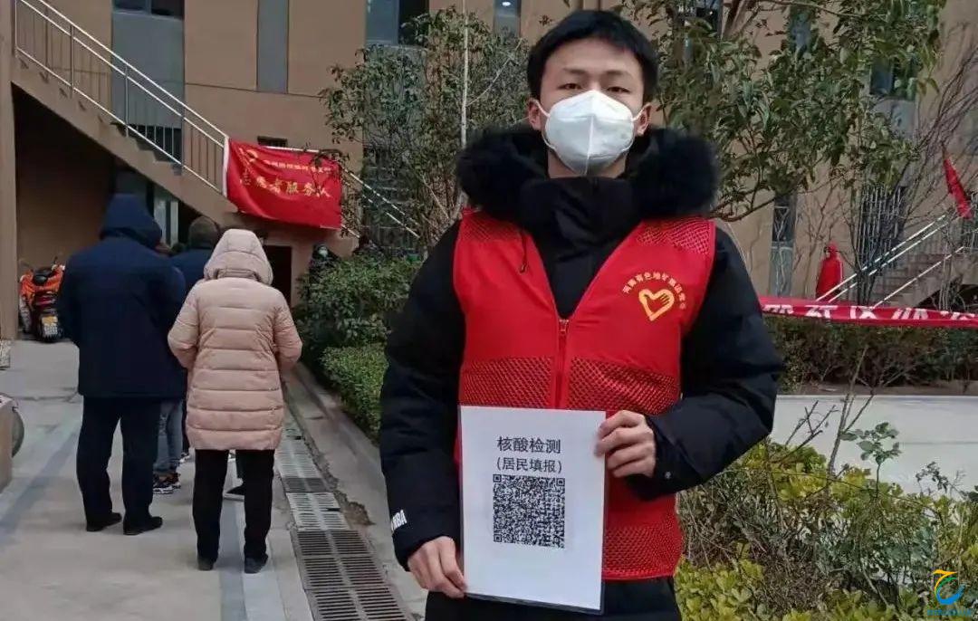 2022年1月5日—15日,李浩洋同学在郑州市金水区丰庆路参加疫情防控志愿者活动。他与社区工作人员一起对从外地回来的居民进行精准的摸底排查,人流密集的区域及时管控,做好防疫知识宣讲。