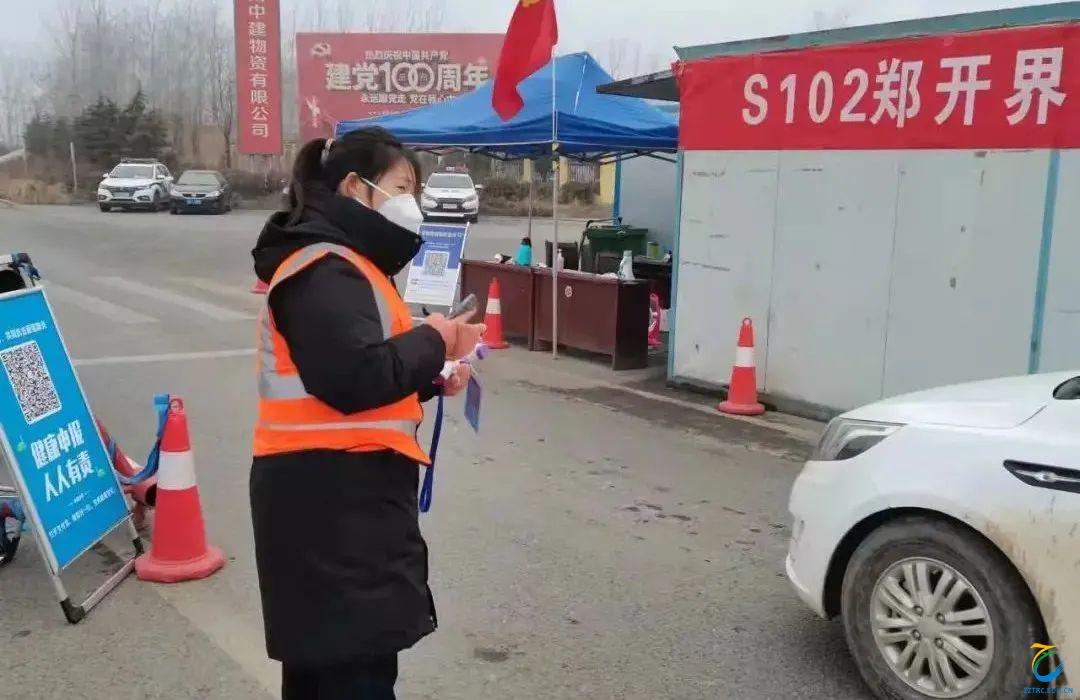 2022年1月9日,冯倩同学在S102郑开交界省道公路卡口参加疫情防控志愿服务。主要负责前往开封尉氏的车辆人员体温测量、查验48小时内的核酸检测证明、扫码消毒等工作。