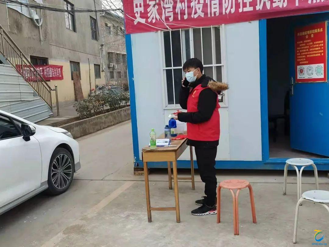 2022年1月5日,芦文其同学在商丘市双桥镇乔洼村疫情防控点报到。他负责对往来人员进行返乡登记、查验健康码和行程码、体温测量以及消毒的工作。并与村委干部为隔离人员准备生活用品,同时监督隔离人员禁止外出,避免与其他人接触,保障村民的健康安全。