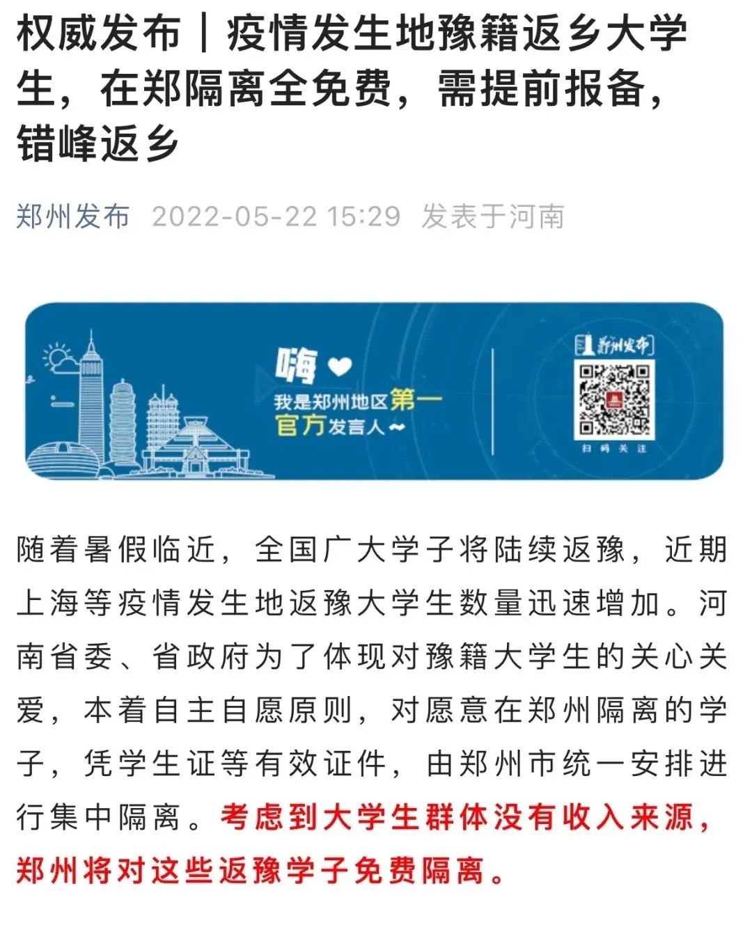 目前包括成都、郑州等在内的多个城市都已出台针对高校学生的返乡免费隔离政策。