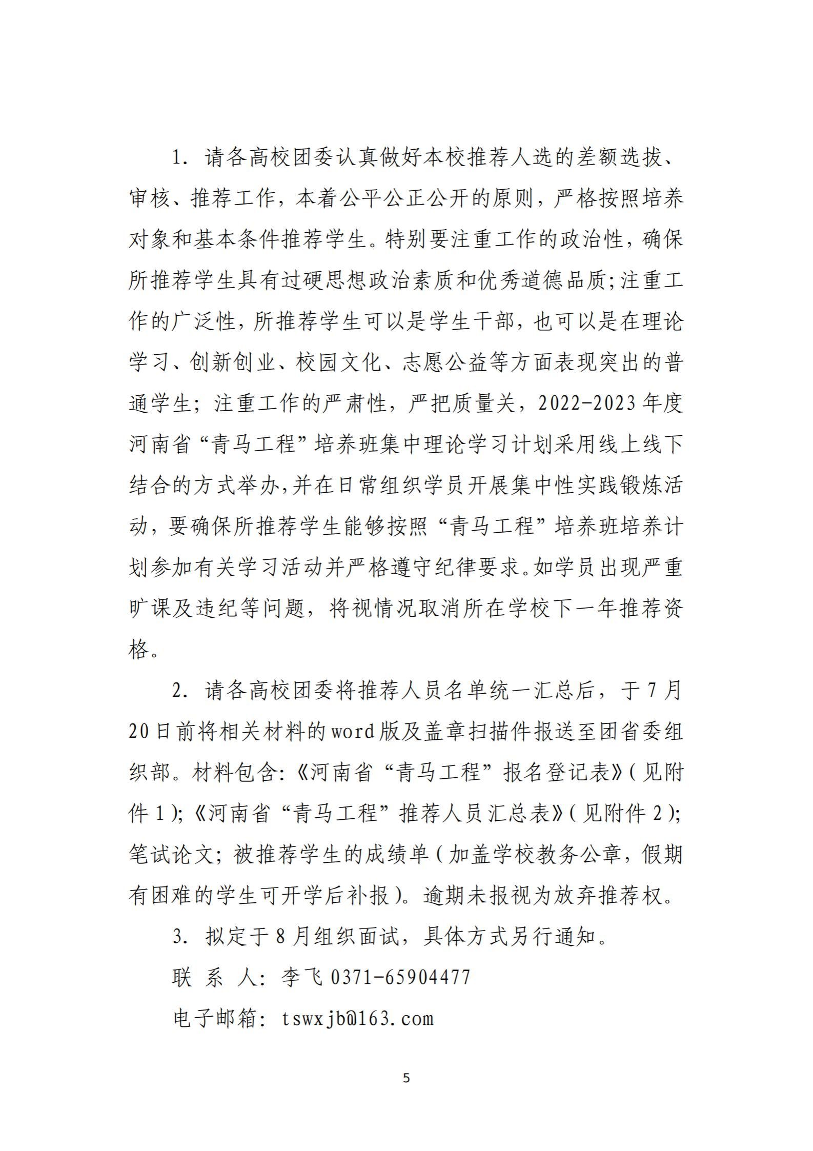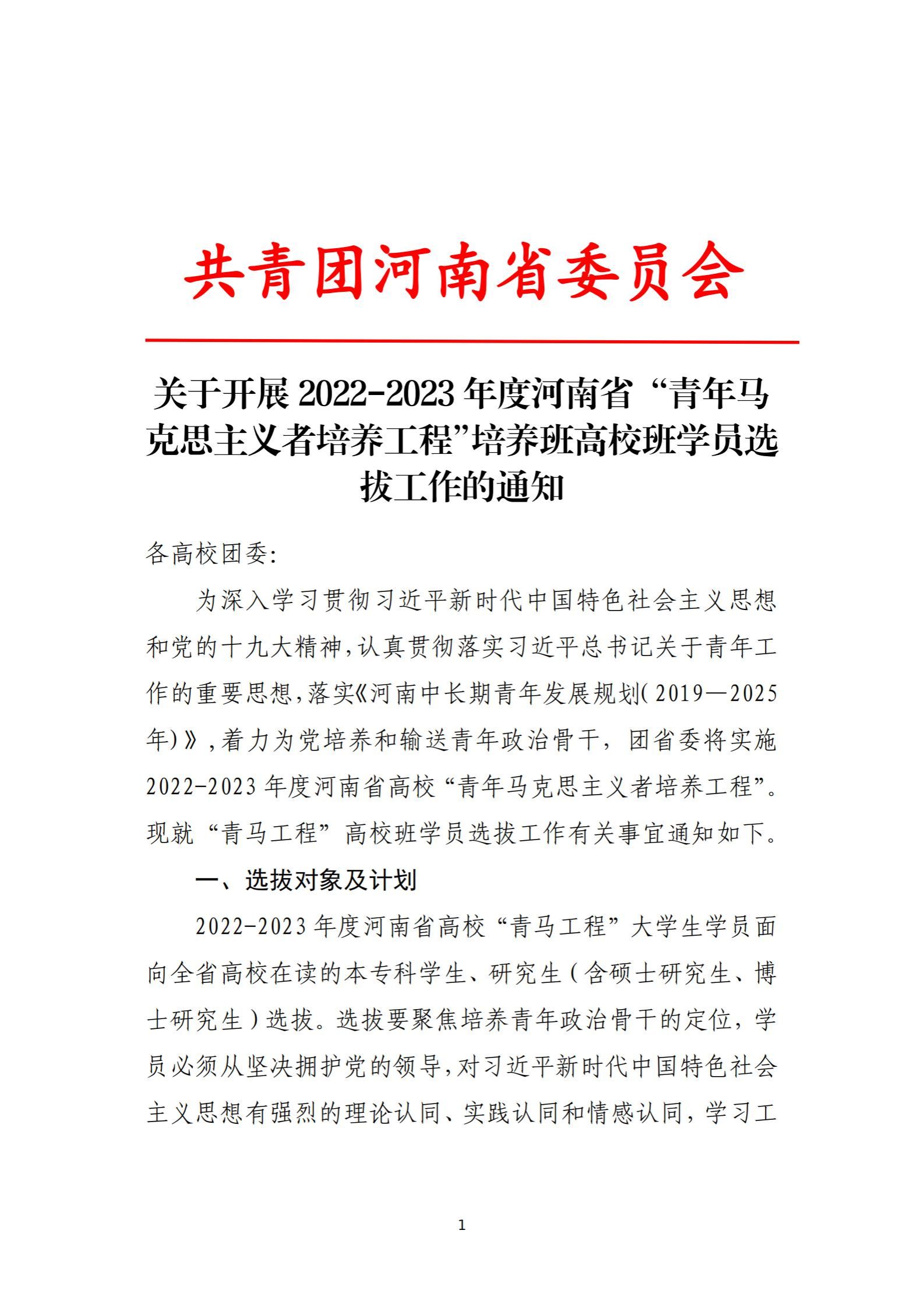 关于开展2022-2023年度河南省“青马工程”培养班学员选拔工作的通知