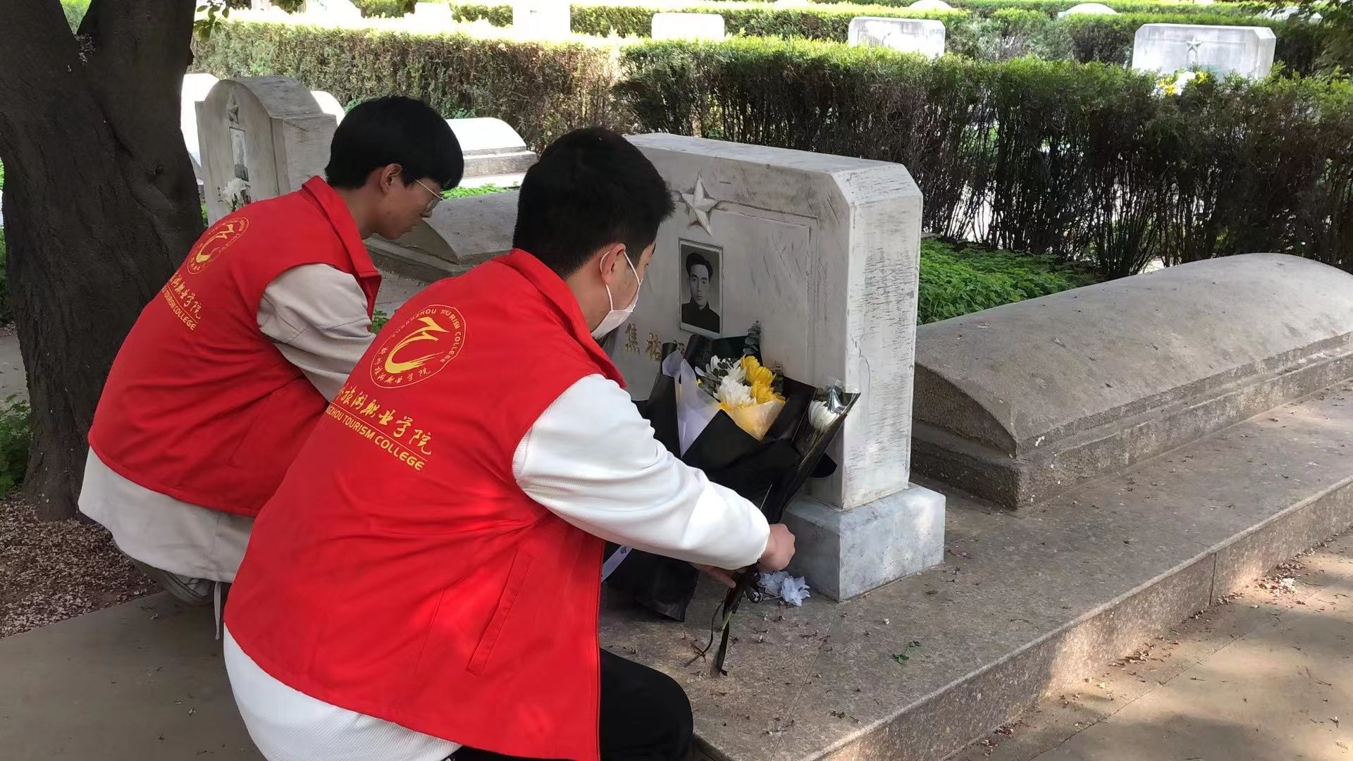 清明节前夕,酒店管理学院于3月31日组织志愿者到郑州市烈士陵园开展了“缅怀革命先烈,厚植家国情怀”的清明祭英烈主题活动。当来到烈士陵园,看到静静耸立在眼前的烈士纪念碑时,志愿者们没有了往日的喧闹,没有了来时路上的嬉笑,都静静地肃立着,低头默哀,缅怀革命先烈们的丰功伟绩,并献上了花寄托哀思。