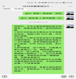 在备考阶段,我院VETS考试负责教师对55名考生组建微信群,利用周末、晚自习的时间,以钉钉课堂为主进行线上的辅导、培训,为学生讲解不同题型考试的重点、解题的技巧,特别是VETS考试以活页式教材展示出不同的职场情境,老师带领学生细抠其中的核心词汇和表达等。同时,针对VETS考试特有的上机口试部分,考前让学生进入语音实训室进行上机培训,让学生更好地适应机考的各项要求。很好地为考试做好了各项准备。