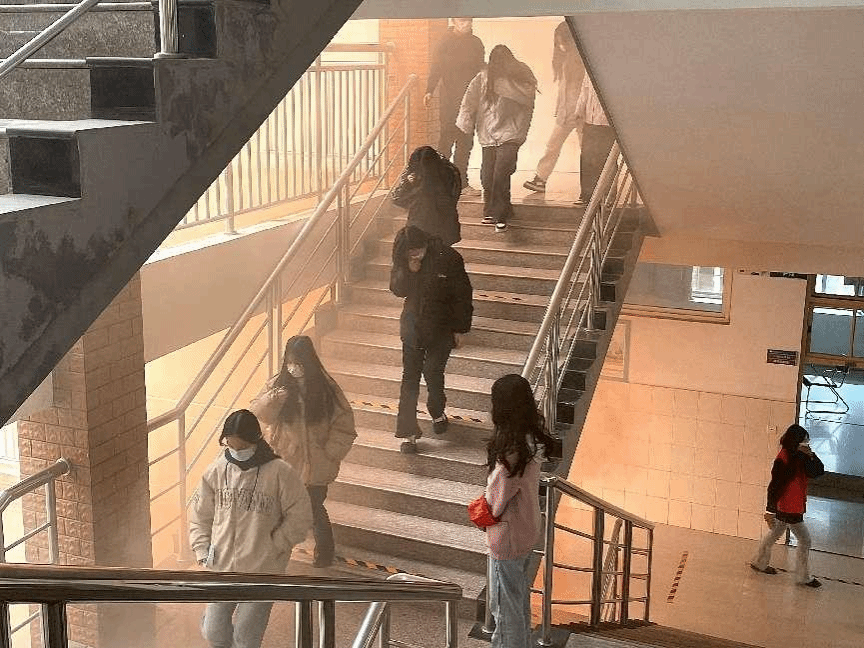 首阶段进行的是消防疏散演习。全体学生与教职员工积极响应,按照预先设定的紧急疏散预案,有序快速地撤离模拟火源区域,真实再现了火灾发生时的安全疏散流程,切实提高了广大师生对突发事件的应对与处理能力。