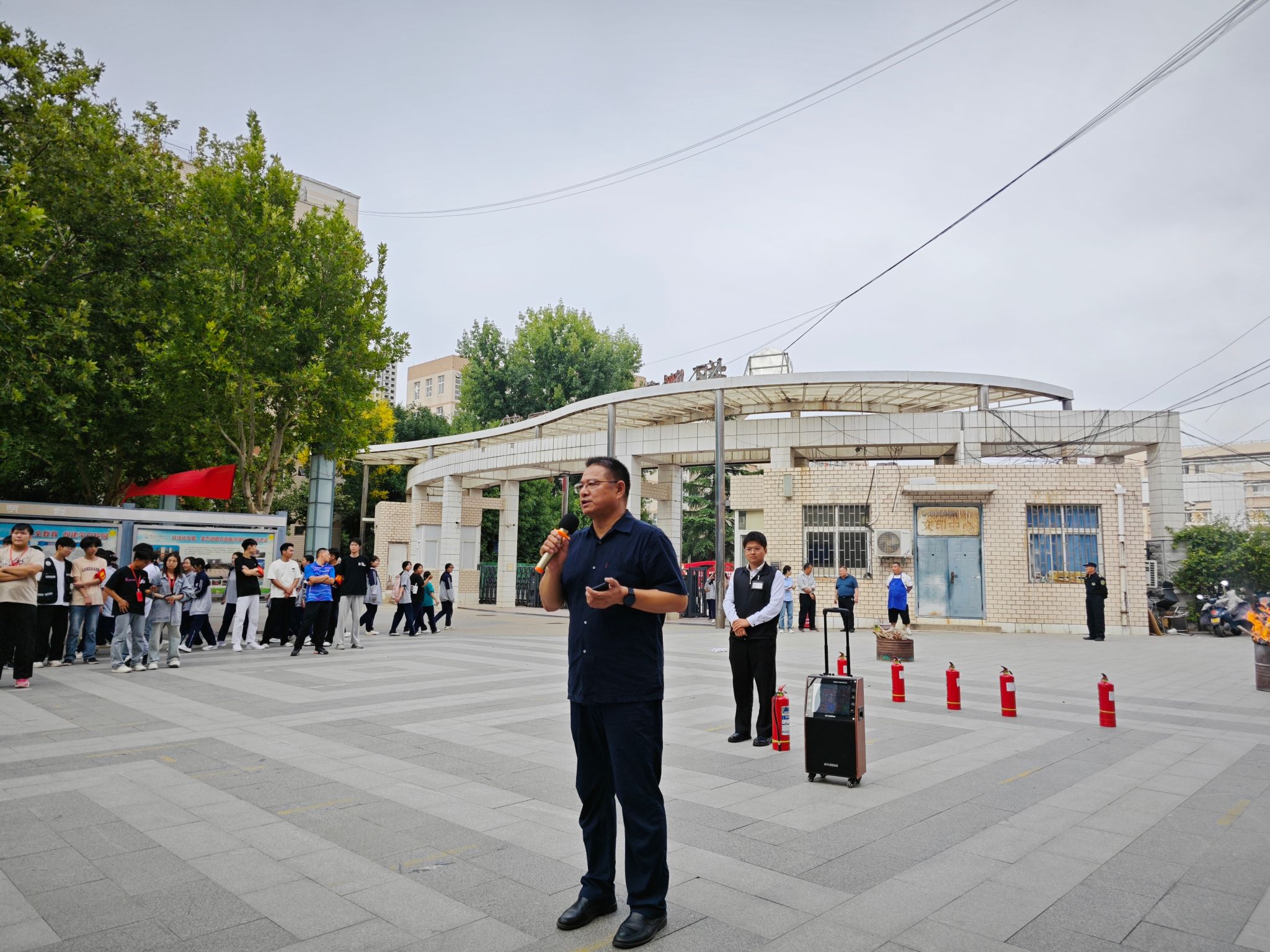 9月14日下午,豫英路校区组织了一次全校范围内的消防知识培训及消防疏散演练活动。此次演练旨在增强全校师生的消防安全意识,提升紧急情况下的自救互救能力。校党委委员、副校长王振超以及校区全体行政人员、班主任均积极参与了此次活动。