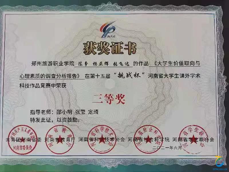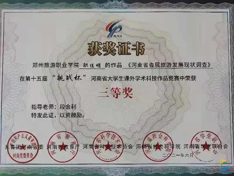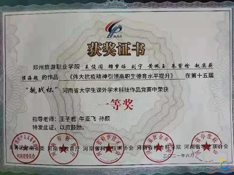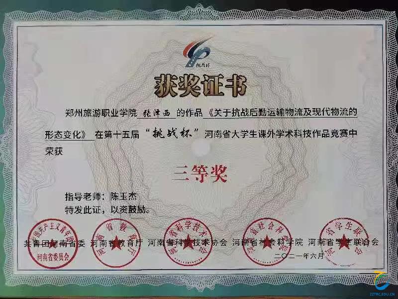 据悉,第十五届“挑战杯”河南省大学生课外学术科技作品竞赛,于2021年3月启动,共有2444件作品参加省级比赛,参赛人数达12万人,内容涉及机械控制、信息技术、生命科学、能源化工、社会经济、哲学法律、教育管理、军事数理等30多个专业和学科。“挑战杯”全国大学生课外学术科技作品竞赛是一项全国性的竞赛活动,简称“大挑”(与挑战杯创业计划大赛对应)。该比赛创办于1986年,由教育部、共青团中央、中国科学技术协会、中华全国学生联合会、省级人民政府主办,承办高校为国内著名大学,“挑战杯”系列竞赛被誉为中国大学生学术科技“奥林匹克”,是目前国内大学生最关注最热门的全国性竞赛,也是全国最具代表性、权威性、示范性、导向性的大学生竞赛。该竞赛每两年举办一次,旨在鼓励大学生勇于创新、迎接挑战的精神,培养跨世纪创新人才。