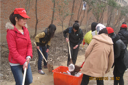 3月5日是学雷锋活动日,我系青年志愿者们组队在院团委老师的带领下在校园和社区开展义务劳动,对学校运动场、社区内部及周边的卫生死角进行清洁。同学们不怕脏不怕累,耐心并细心地将落叶中白色垃圾分离出来,并集中处理,用自己的实际行动向雷锋致敬