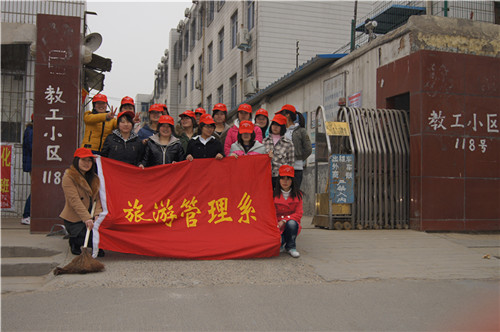 2012年3月5日下午旅游管理系青年志愿者在院团委青年志愿者协会的组织下于校园、社区等地开展形式多样的学雷锋活动。