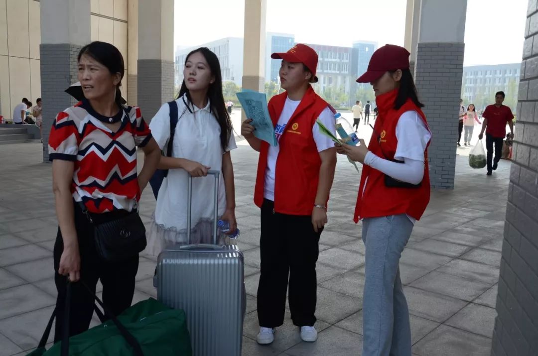 校园里,穿着红色背心的志愿者的身影随处可见。他们走到每个需要帮助的同学身边亲切解答,为迎新工作的顺利开展保驾护航。那身影奔波在校园里的每个角落,他们跟随新生旁边为他们指明方向。