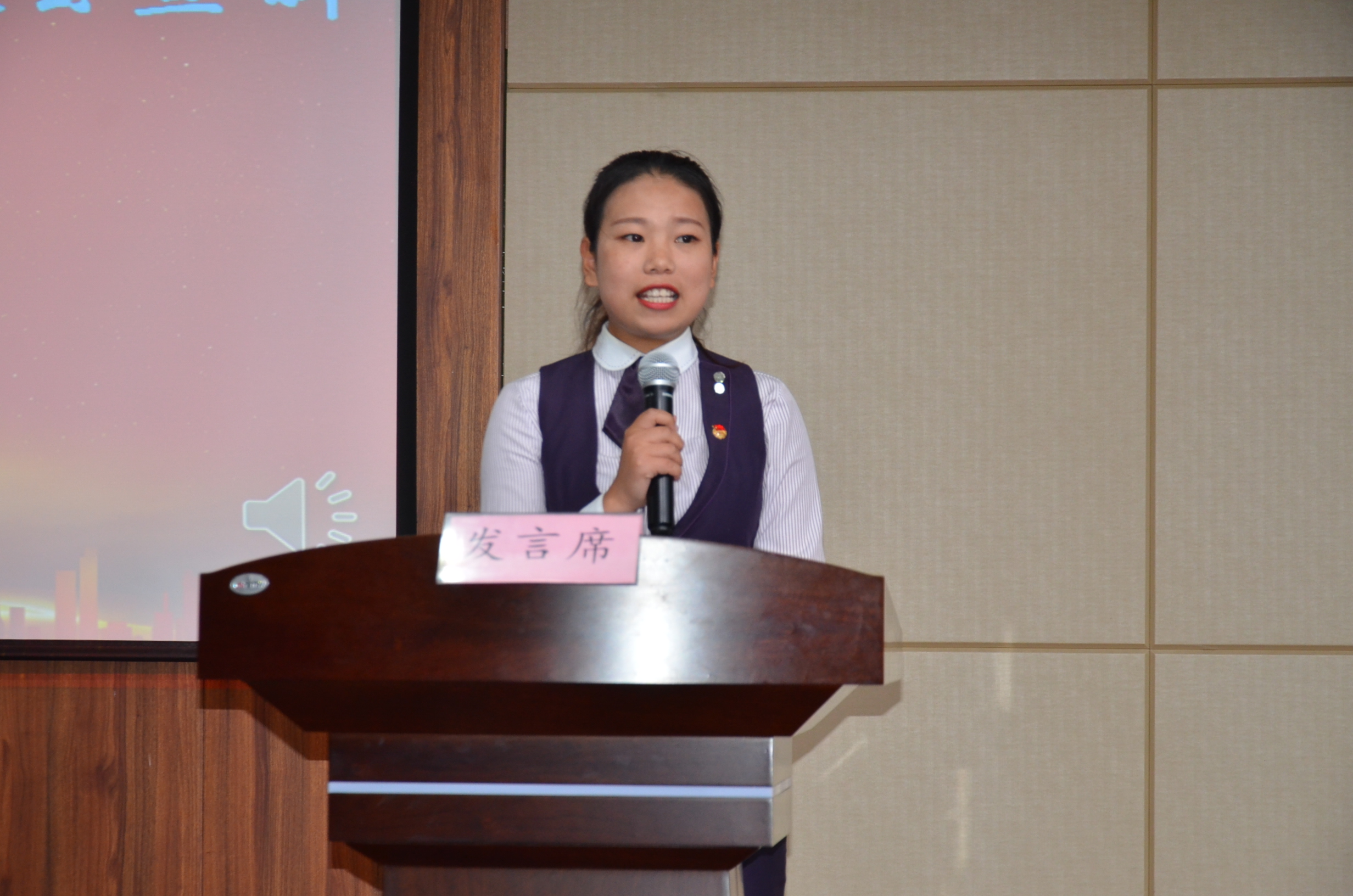 观看视频后由2017级团干代表张静做离任发言,