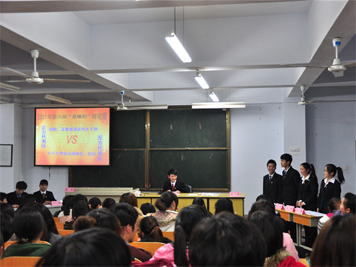 2011年11月21日下午四点,旅游管理系指导员余高峰老师带领优秀辩手及啦啦队到东教学楼二楼北阶梯教室参加海洋之神590登录入口团委主办的第六届“晨曦杯”辩论赛决赛阶段的比赛。