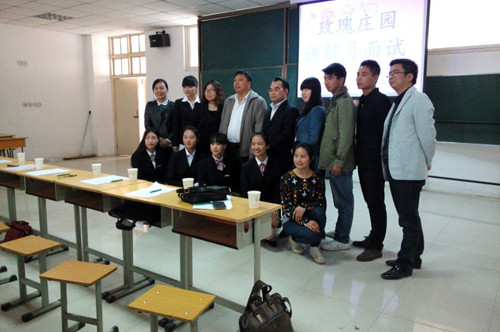 2014年4月26日15时,旅游管理系云梦玫瑰庄园讲解员面试活动在西教学楼301教室开展。出席本次活动的评委有河南省云梦庄园旅游开发有限公司董事长王崇文,培训总监杨旭,河南电视台旅游栏目制片人王敏,及旅游管理系党总支书记肖靖和团总支书记金慧慧等。