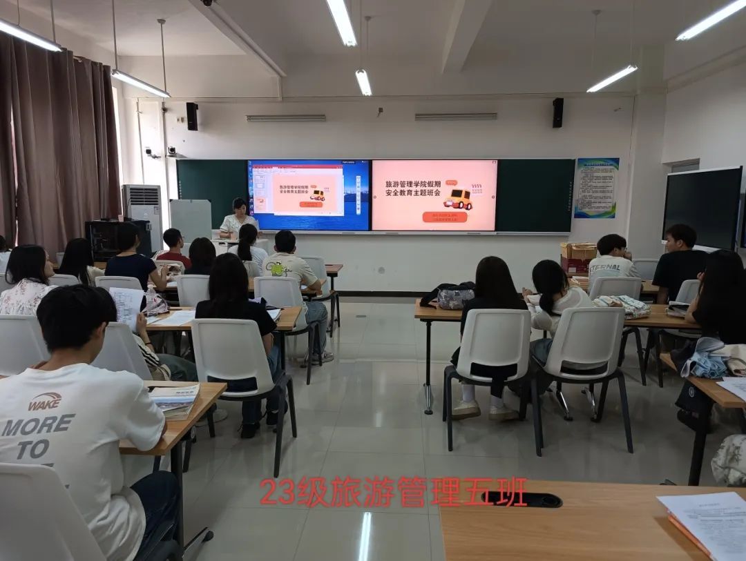 为提高学生假期安全防范意识,培养学生的自我保护能力,使学生度过一个平安、快乐的假期,6月19日,郑州旅院旅游管理学院组织召开假期安全教育主题班会,班会由各班班主任主持。