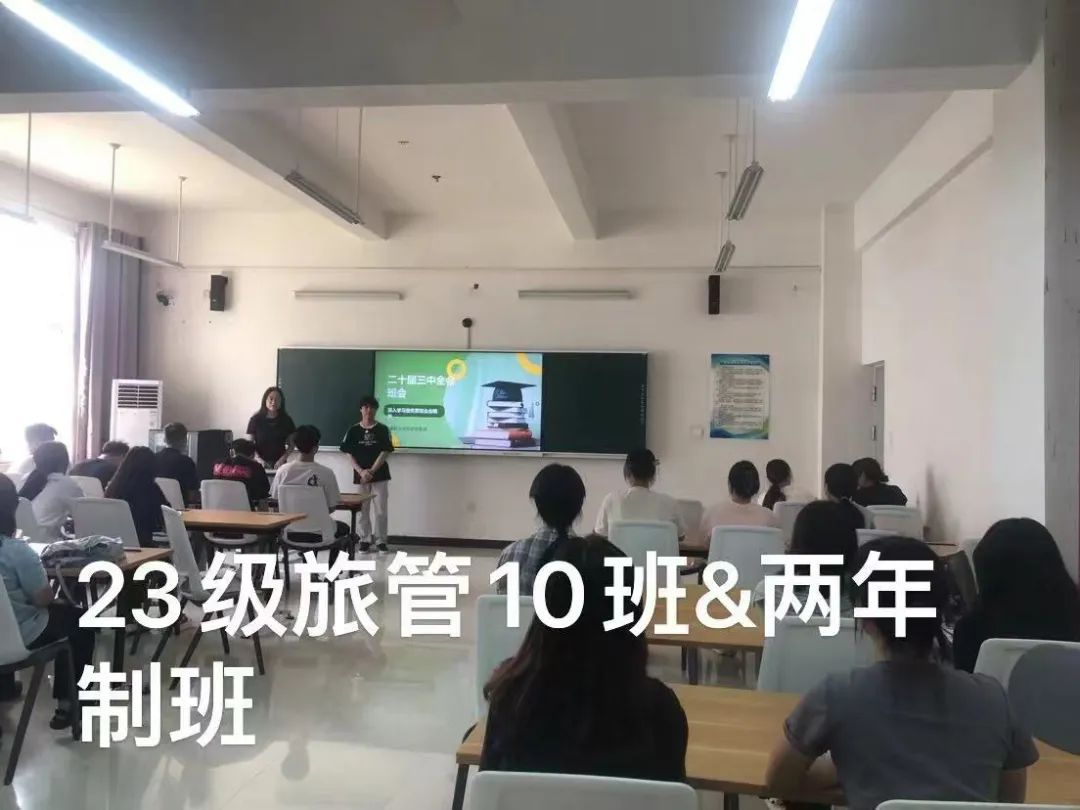 党的二十届三中全会是在全面推进强国建设、民族复兴伟业的关键时期召开的一次重要会议,对进一步全面深化改革、推进中国式现代化具有重要意义。学习好宣传好贯彻好全会精神是当前和今后一个时期的一项重大政治任务。青年是国家的未来、民族的希望,旅游管理学院通过班会广泛开展专题学习,在学生中扎实做好学习宣传工作,用党的创新理论武装青年学子头脑。会上,同学们就如何在学习和生活中践行全会精神展开了热烈讨论,纷纷表示要勇担使命,砥砺前行,为推进中国式现代化建设贡献青春力量。