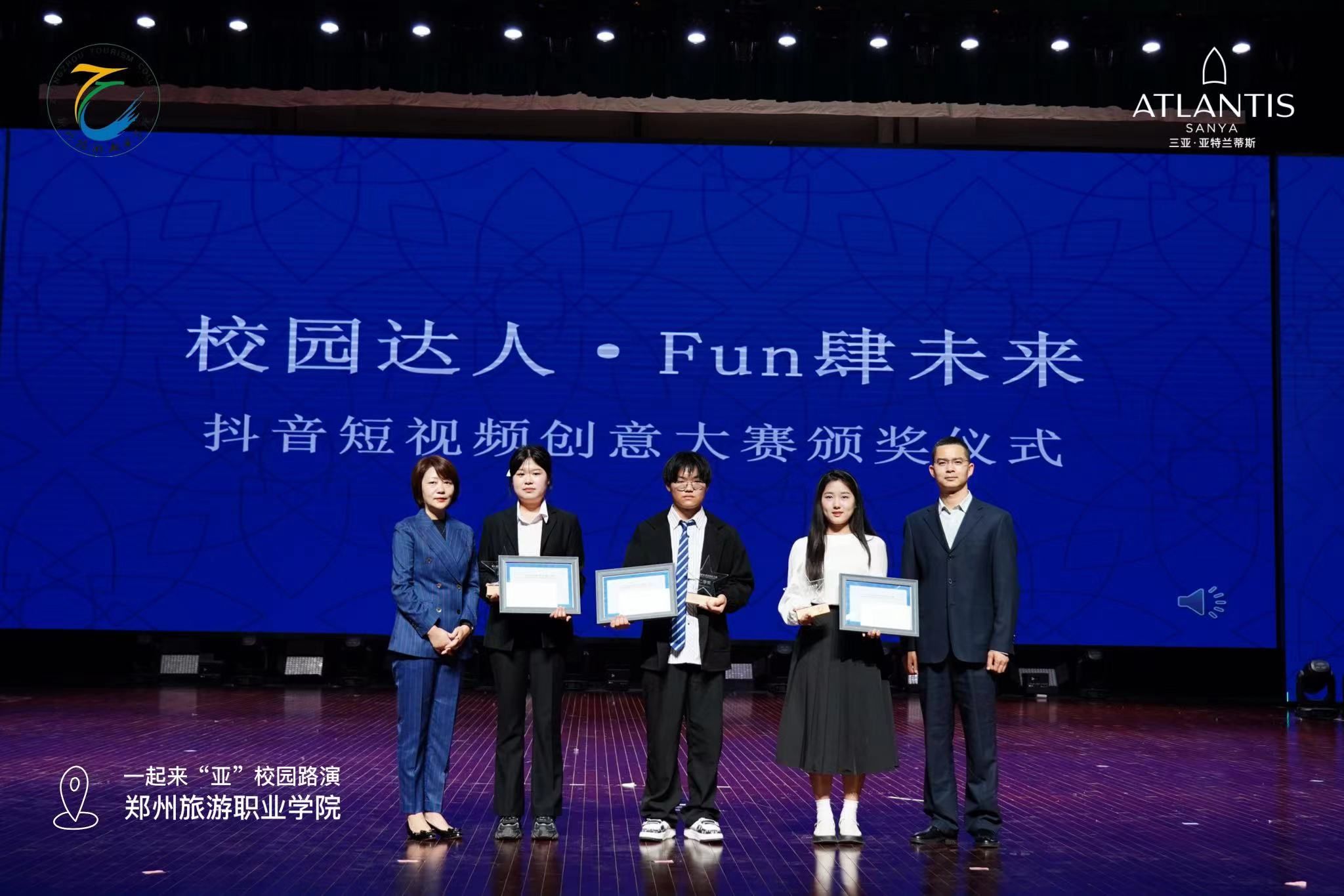 而后,陈海彬和杨萱为本次活动的网上预热“要出色FUN肆未来”抖音短视频创意大赛获奖选手颁奖。同学们通过健康活泼、积极向上的短视频展示了专业风采和美好的校园生活。