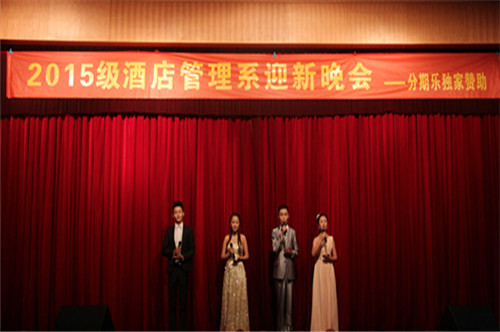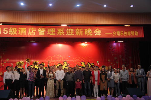 2015年10月14日19时,酒店管理系在学院三楼礼堂举办了2015级酒店管理系迎新晚会。本次晚会的嘉宾有酒店管理系主任李晓东、党总支副书记陈海彬、团总支书记侯宁波以及2015级班主任和辅导员。