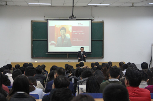 2015年11月9日下午,在实训楼一楼报告厅的万豪CHEI宣讲会隆重举行。邀请来自万豪酒店人力资源部总监戴明生座谈演讲。参加此次讲座的有酒店管理系,旅游管理系等系的大二学生代表。