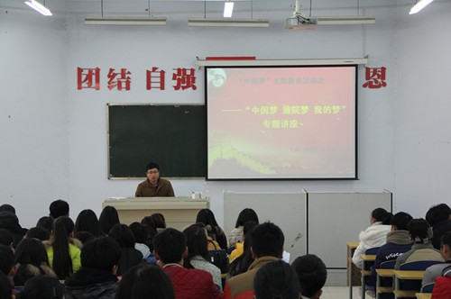 2015年11月25日中午12时,酒店管理系在校史馆一楼报告厅进行了二级团校第九课程,本次课程我们邀请了酒店管理系辅导员马彦峰老师为我们讲第九课——“中国梦、旅院梦、我的梦”专题讲座。参加这次课程的学生包括二级团校的学生以及新入团的团员。