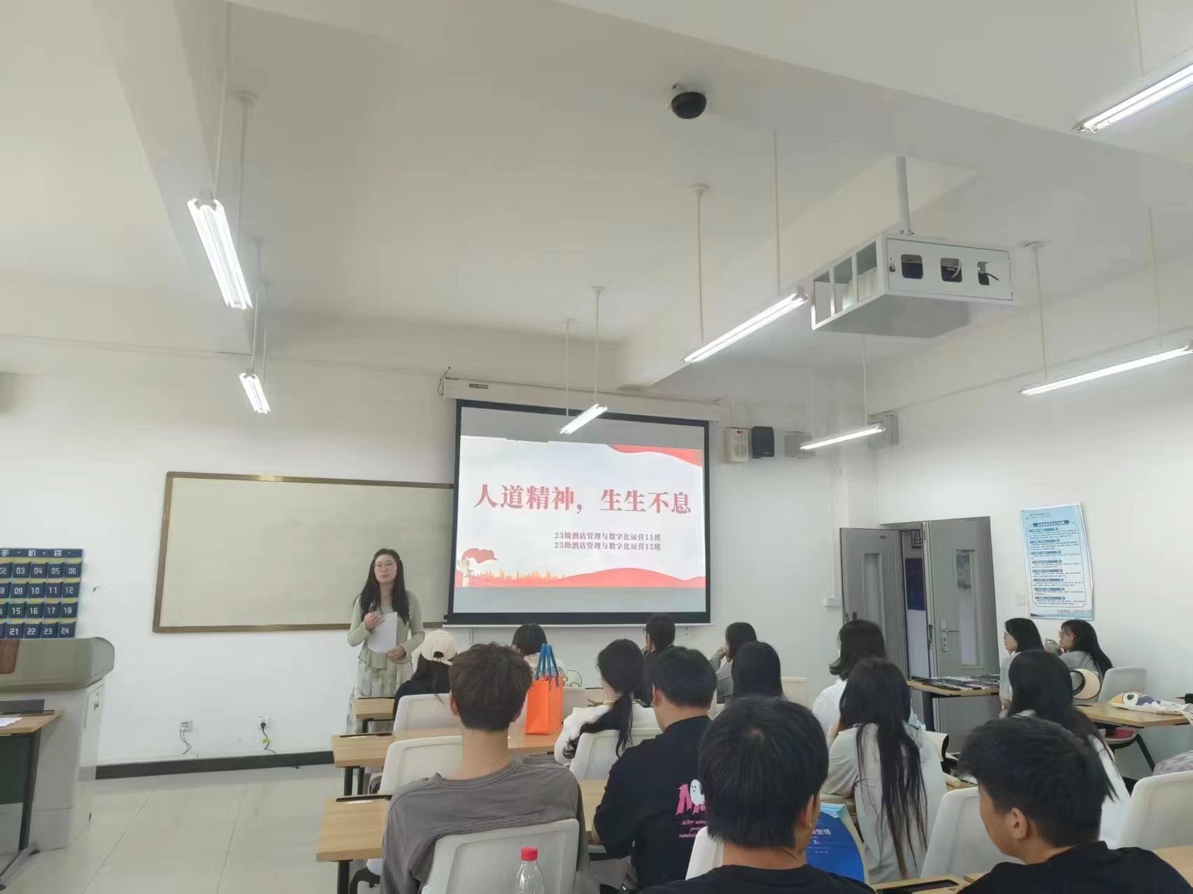 为纪念第77个“世界红十字日”,弘扬人道主义精神,提高学生们的爱心和社会责任感,让每个学生认识到关爱他人就是关爱自己,使博爱精神在校园中得以传承和发扬。酒店管理学院于本周在各班组织召开了“人道精神,生生不息”主题班会。