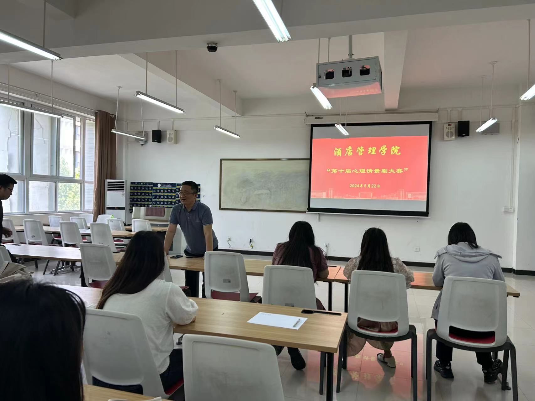 为宣传心理健康知识,营造良好的校园心理文化建设氛围,酒店管理学院于5月22日下午组织第十届心理情景比赛。酒店管理学院党总支书记郭防出席并观摩比赛,学院辅导员老师担任评委。
