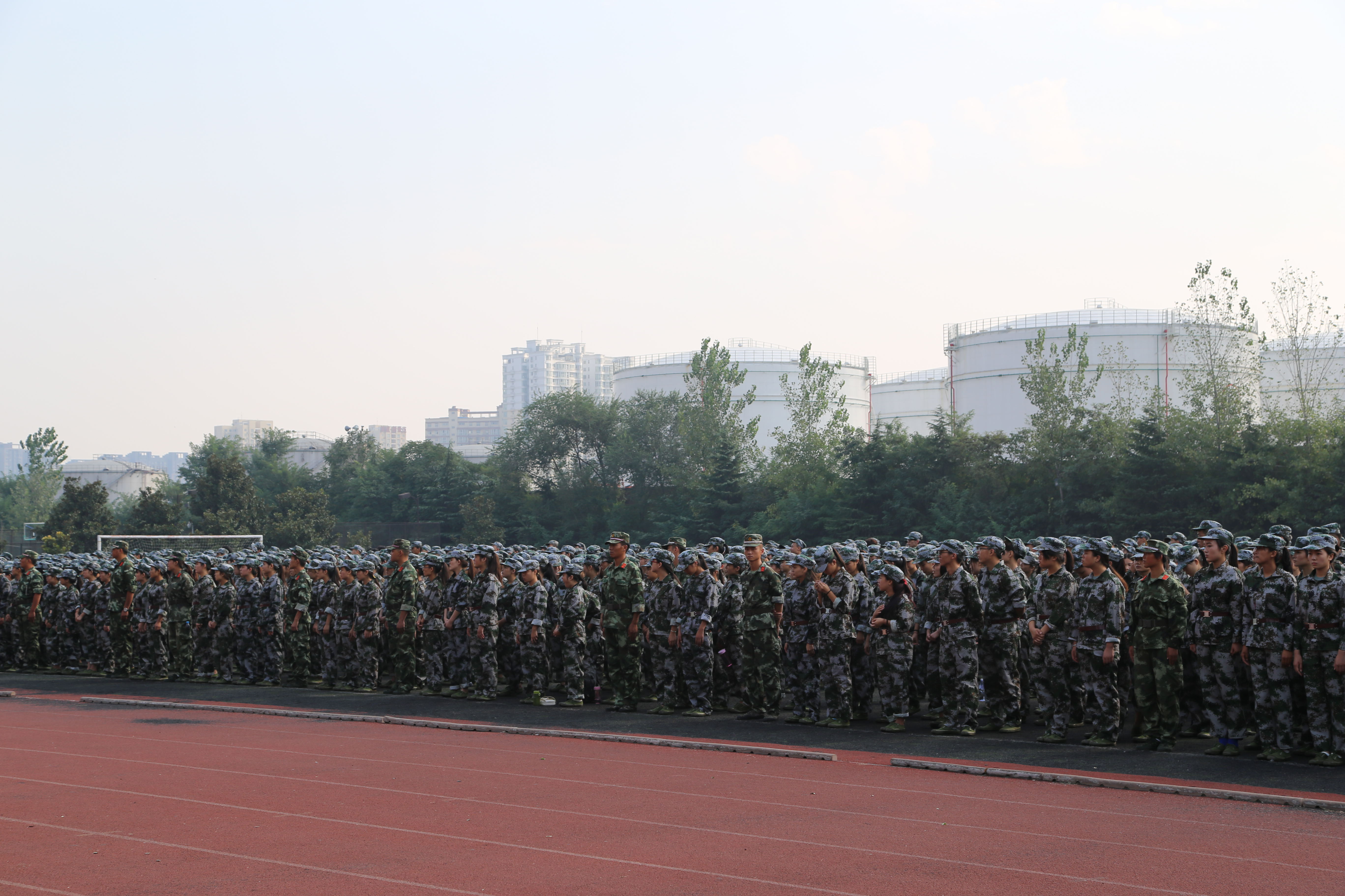 又是一年骄阳似火,又是一年扬帆起航。伴随着初升的太阳,全体军训同学在校操场集合完毕,等待着军训的洗礼。首先进行的是升旗仪式,全体人员面向国旗行注目礼,唱国歌。接下来,院长樊豫陇进行主持并介绍各出席人员,并给予同学们深切的希望。接着是15级老生代表发言,他以一位学长的角色给军训同学们热切的鼓舞。最后,大会在所有军训同学的宣誓中结束。