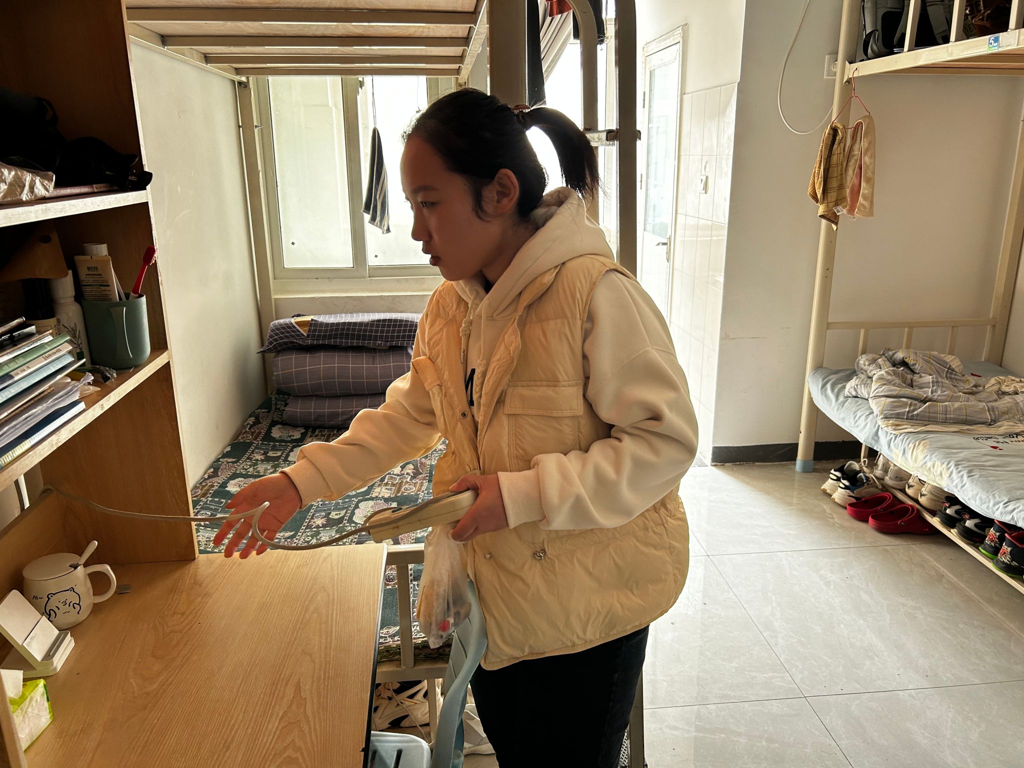 检查过程中,老师们对学生宿舍进行了全方位检查,检查宿舍是否有违章使用和存放各种大功率电器等其他安全隐患,检查的同时,老师们叮嘱学生,不要私拉乱接各种电线、网线,不要在宿舍内堆积、存放易燃物品,保持宿舍整洁,做到人走断电,宿舍安全记心中。