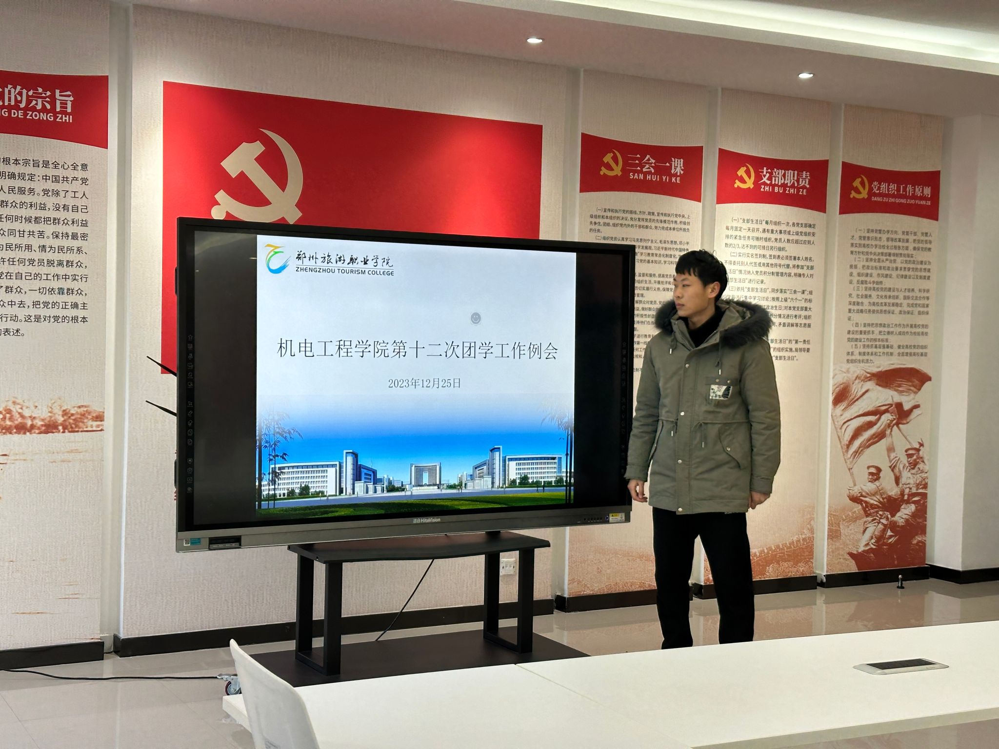 机电工程学院团总支于12月25日上午在1A教学楼212会议室召开本学期第十二次团学工作例会,会议由团总支书记马彦锋主持,学院学生会、团总支各部门负责人参会。