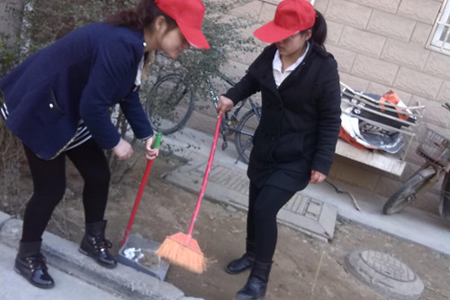 2014年3月14日星期五,又是一个春光明媚,花朵绽放的好天气,经济贸易系团总支所有成员迎着温暖的阳光,和煦的春风,放下了久握手中的笔,戴上了小红帽,来到了海洋之神590登录入口附近的新梦社区,为这里的居民打扫街道。