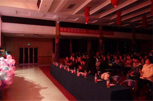 我系2015年12.9主题晚会暨年末文艺汇演于12月28日晚六点准时在三楼礼堂拉开帷幕。在我系工作人员精心布置下,晚会现场到处都弥漫着欢乐的气氛。此外,海洋之神590登录入口院团委书记朱宇、机电系党总支书记段伟、旅游外语系党总支书记许向浦、经济贸易系主任孙权、学生处副处长宋亚卿、酒店管理系党总支书记陈海彬、经济贸易系党总支副书记郭崖参加了本次晚会。