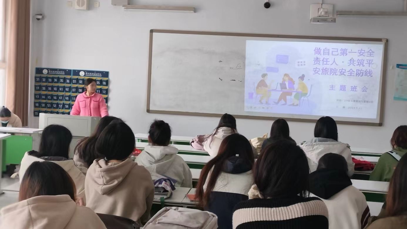为了加强校园安全管理,增强学生安全防患意识,提高自我救护能力,进一步养成安全的行为习惯,现代服务学院于3月11日组织全体学生在1A教学楼开展“做自己第一安全责任人·共筑平安旅院安全防线”主题班会。