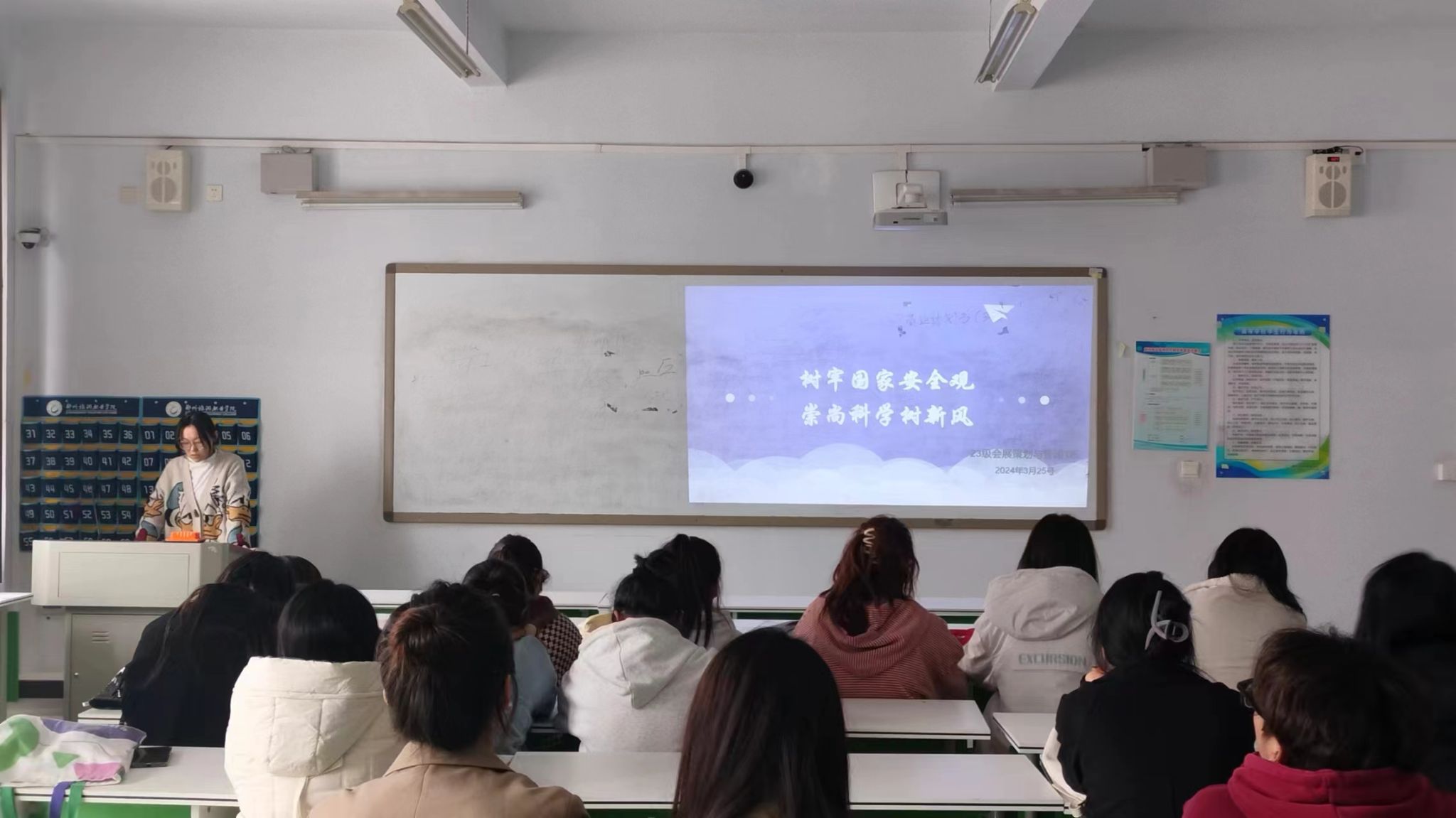 为持续推动学校防范邪教警示教育宣传工作,切实提高师生识邪防邪拒邪能力,努力营造崇尚科学文明、倡树新风正气的浓厚氛围,现代服务学院于3月25日组织全体学生在1A教学楼召开“树牢国家安全观、崇尚科学树新风”主题班会。