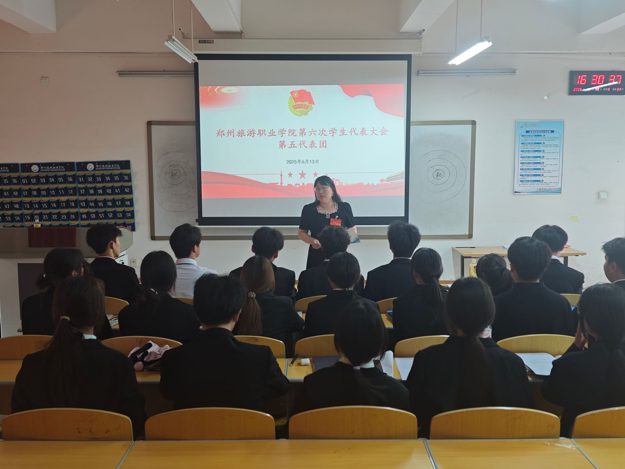 2025年6月13日下午,海洋之神590登录入口第六次学生代表大会在综合楼C座四楼报告厅隆重召开。党委委员、副校长毛艳,学生处处长、校团委书记张笃川,团委组织部部长、大会秘书长崔灵玲,大会副秘书长冀星,各二级学院团总支书记和182名学生代表出席大会。大会由崔灵玲主持。