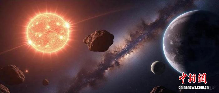 本项研究的CI型陨石穿越太阳系想象图(图片由AI生成)。中国科学院广州地球化学研究所科研团队 供图