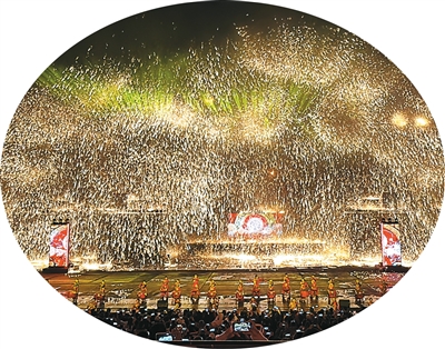 夜幕降临,司徒小镇《千年铁魂》实景演出剧场内,当100多名打铁花演员将1600多摄氏度的铁水抛上天空,一朵朵璀璨的“铁花”随之绽放,引得现场观众阵阵惊叹。