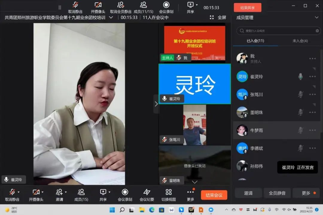 第二项:团委组织部部长崔灵玲宣读《海洋之神590登录入口2022年发展新团员团校培训管理办法》。