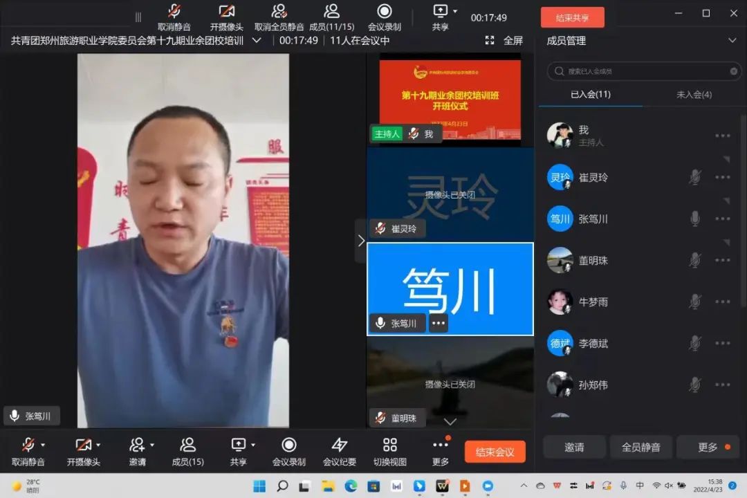 第三项:团委书记张笃川讲话。首先,他指出本次业余团校是在恰逢建团100周年,更是党的二十大召开之年举办的,意义非凡,格外注目,各位学员要倍加珍惜、学以致用、早日入团。