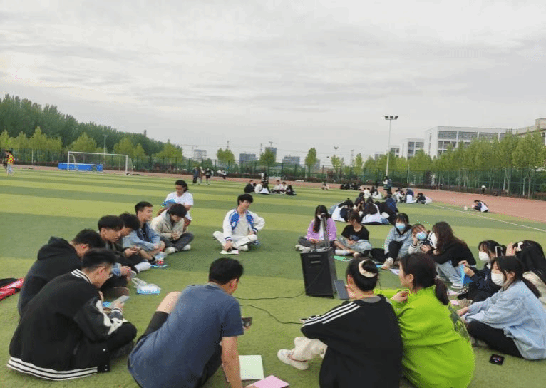 (“三个一”工程:团支部在操场进行特色班会活动)