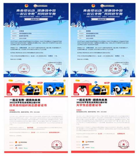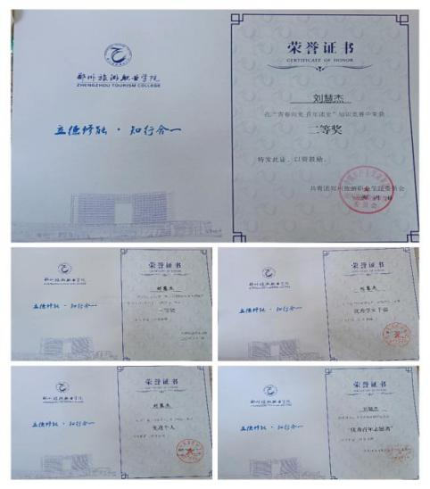 团支部多次开展文体活动、青年志愿活动和社会实践活动,积极响应学校和学院的号召,并在活动中表现突出,取得优异的成绩。在2021年12月学校举办的“请党放心·强国有我”青春在线文艺汇演活动中,陈苏静同学获得了“先进个人”的荣誉称号。在2022年国家安全教育日活动中,孙露寒成绩优异为班级争得荣誉。在2022年4月旅游外语学院第四届外语书法大赛中,郭晗铭荣获“优秀奖”。在2022年4月“与礼仪牵手,和文明同行”活动中,王义可、丁彪、李乾坤、袁帅、孙露寒5位同学表现优异,获得荣誉证书。在2022年2月全国大学生“一起云支教,共同迎冬奥”志愿者活动中,李乾坤,杨坤雨积极参与并获得团中央颁发的“优秀志愿者”荣誉证书。在此活动的影响下,2022年7月份举办的“一起云支教,阅读向未来”志愿活动中共有13名同学参加,再一次展现了该团支部成员积极向上的青春风采。