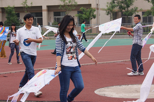 2013年5月14日我院一年一度的风筝节又拉开了帷幕。本届风筝文化艺术节本着继承和发扬中国传统文化艺术,使大家更加了解风筝文化,并通过积极参与各项社团活动,给众多学生提供一个实现自我价值、挖掘自我潜力、提升自我素质的舞台,也让大家在合作中不断充实自己,全面提高团结合作能力。 此次风筝节以“放飞梦想为爱飞翔”为主题,活动由院社团部主办,参与选手有各系班级以及各社团。此次活动主要分为三大版块:风筝制作、风筝放飞和摄影。风筝放飞比赛的规则是必须在一小时内把风筝放的最高、最快、最稳。本次社团风筝节各个比赛项目分别评出了最佳风筝制作奖、最佳感动瞬间摄影奖、放飞时间较长奖、放飞风筝最高奖以及团体奖。