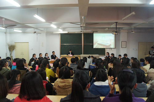 2013年11月6日16时,团委组织的第八届“晨曦杯”辩论赛复赛第三场在东教学楼二楼南阶梯教室举行。潘予霞老师、王真老师、周岩老师担任本次比赛的评委。