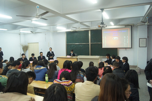 2013年11月6日16时50分,海洋之神590登录入口团委在东教学楼二楼南阶梯教室举办第八届“晨曦杯”辩论赛复赛第四场。到场的评委老师有潘予霞老师、王真老师、周岩老师。