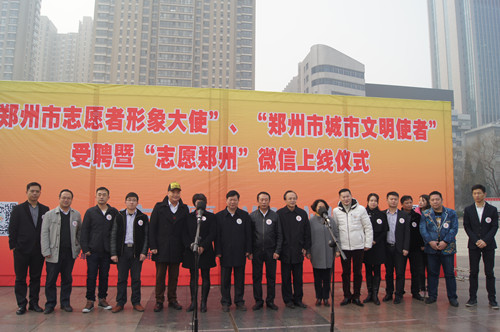 受聘担任“城市文明使者”的有:中共十八大代表、全国劳动模范、全国道德模范、全国五一劳动奖章获得者黄久生,“中国好人”、全国第六届中华慈善奖获得者、河南省道德模范、市人大代表李春风,北京大学客座教授、现代艺术院院长魏领,河南客家商会常务副会长、国内知名收藏家詹松镇,河南省歌舞演艺集团二级演员、青年女高音歌唱家、省三八红旗手薛青,王希玲艺术学校校长、郑州市优秀教育工作者阴志勇,郑州市青联副主席、河南电台私家车广播主持人陶真,郑州电台首席主持人、郑州新闻广播总监付天,楷林置业有限公司副总经理郭春江,财富(集团)有限公司董事长张慧智,郑州市青联常委、郑州人民广播电台首席主持人张明,全国优秀志愿者、河南省金牌志愿者张楠。