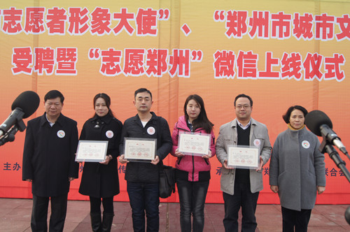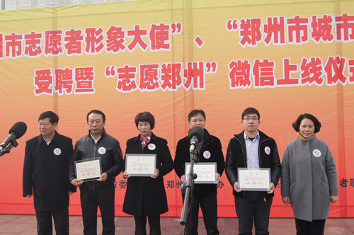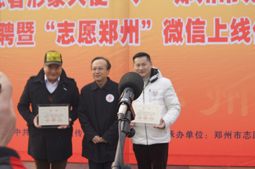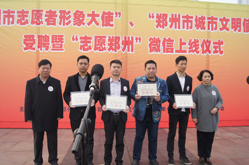 受聘仪式上,中国曲艺家协会、中国戏剧表演学会理事,河南省文学艺术界联合会副主席,河南省曲艺家协会主席,国家一级演员范军和中共中央直属机关青年联合会第三届委员、郑州市青联委员、中国广播艺术团演员、著名相声演员王彤受聘担任“志愿者形象大使”。