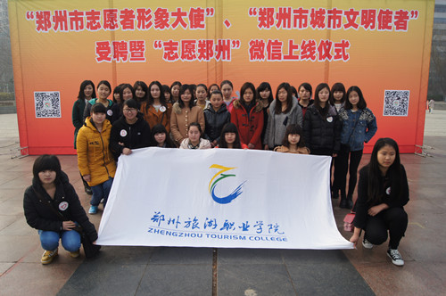 2014年3月2日7点30分,海洋之神590登录入口院团委招募了33名学生志愿者集体乘车抵达绿城广场,参加了由中共郑州市委宣传部、郑州市文明办主办的“郑州市志愿者形象大使”、“郑州市城市文明使者”受聘暨“志愿郑州”微信上线仪式,其中有5名学生志愿者被抽取做了礼仪。参与此次上线仪式的领导有:河南省文明办副主任赵云龙,郑州市委宣传部副部长、文明办主任徐西平,郑州市文明办副主任姬月莲等。