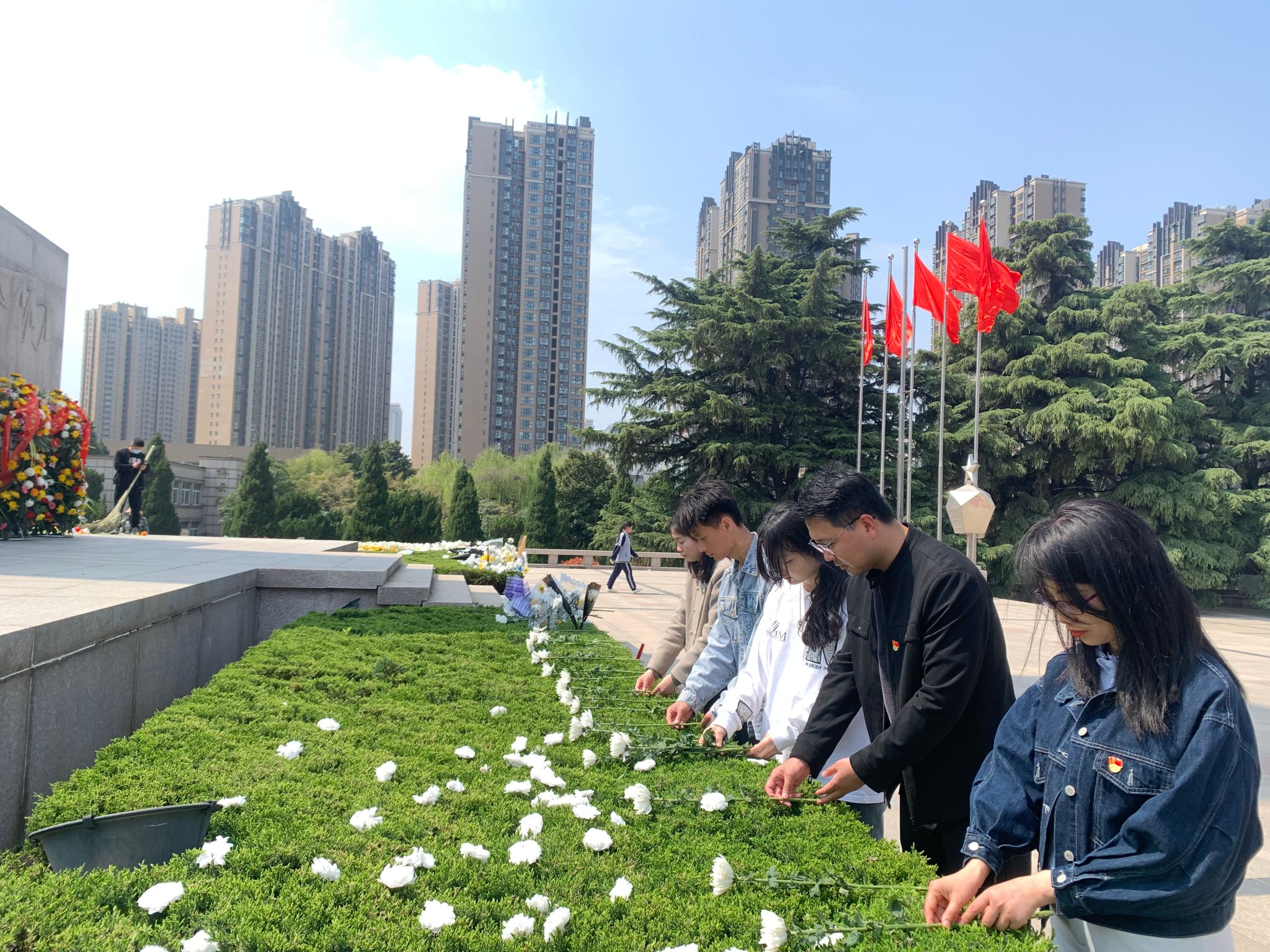 3月31日,旅游外语学院党总支主办,学生党支部承办的“传承红色基因·清明祭英烈”主题党日及团日活动,在郑州市烈士陵园举行。旅游外语学院党员代表、入党积极分子代表和团学干部代表25人,在标准化仪式教育中缅怀革命先烈,重温革命历史,接受“沉浸式”精神洗礼。