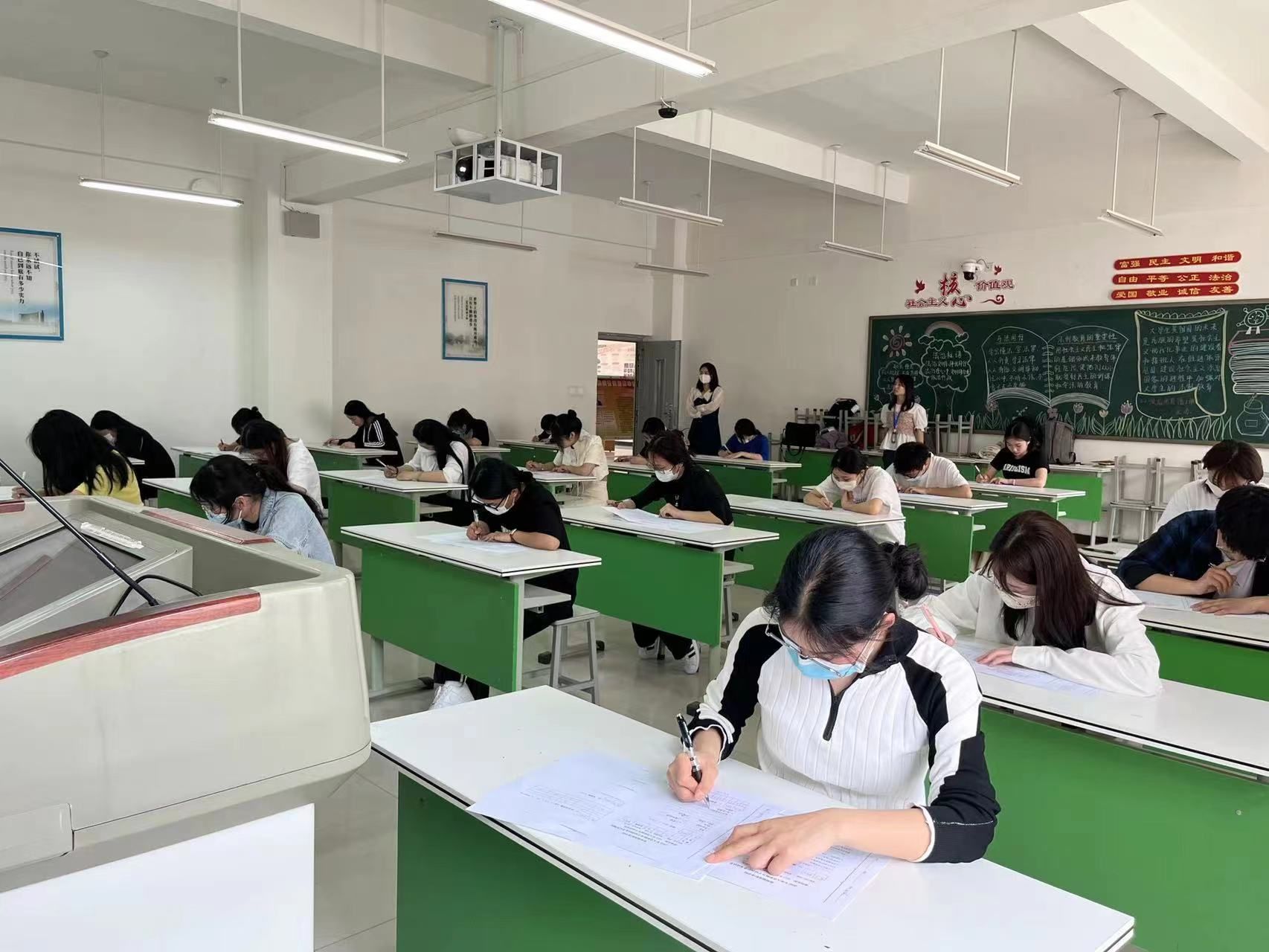 考试开始前,徐慧老师向大家强调了考试中需要注意的相关事项,希望同学们严格遵守考场纪律,做到诚信考试。考试正式开始后,考生迅速开始作答,毫不懈怠,考场秩序井然有序,纪律严明,表现出我院入党积极分子的优秀学风与考风。