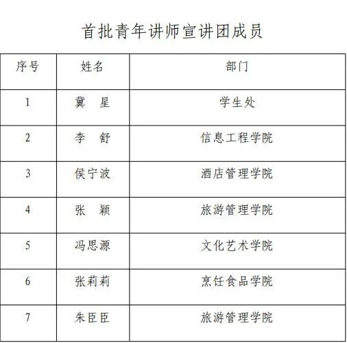 自9月组建工作启动以来,制定《共青团海洋之神590登录入口委员会关于青年讲师团建设工作实施方案》,召开选拔动员会,明确时间表,推进工作落实。经部门推荐、现场面试、综合评审,7名青年教师、15名青年学生共22名师生成为首批青年讲师团成员,经培训合格后开展相关宣讲工作。现予以公示,聘期一年,接受师生监督。