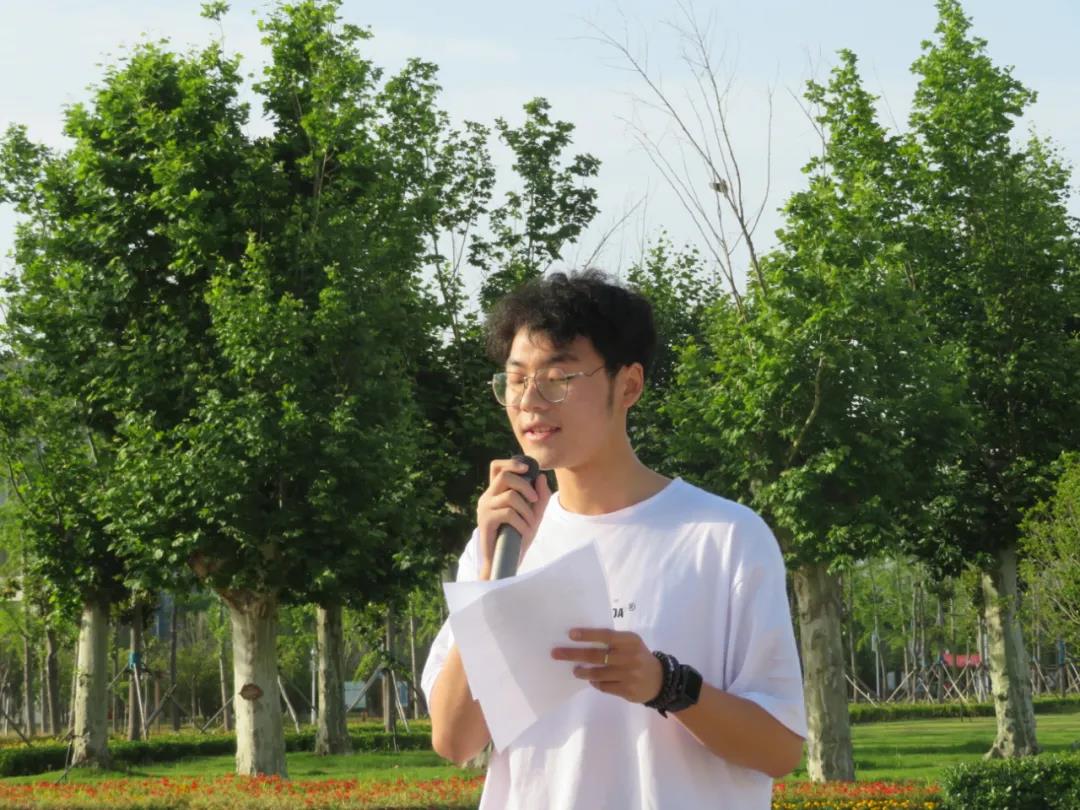 学生代表蔡晶晶同学发言,她讲到在中国共产党波澜壮阔的100年历史画卷中,闪烁着一道道耀眼的光芒,那是一位位共产党先辈的光辉身影。在万里长征中砥砺前行、在经济困境中摸爬滚打,夺取了新民主主义革命胜利、赢得了改革开放丰硕成果,推动中国特色社会主义迈进新时代。