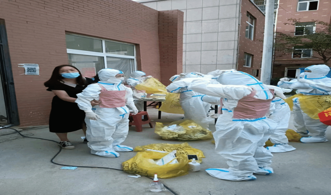(团支部姚傲雪同学经过培训后,参与核酸检测志愿服务)