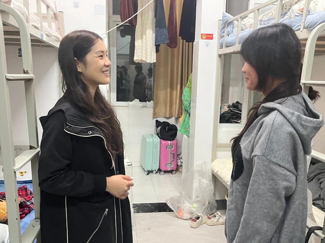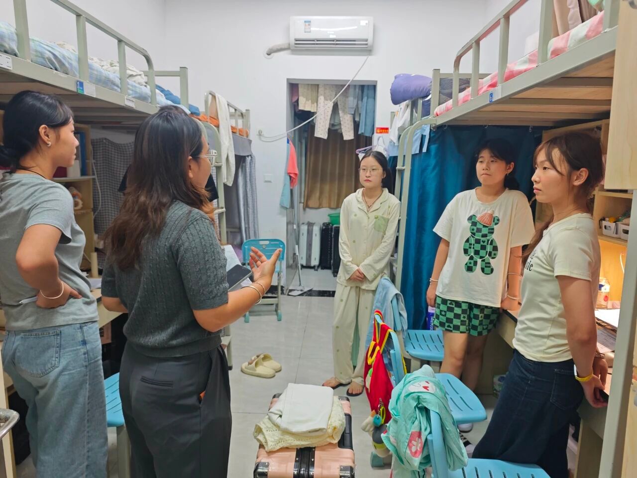走访期间,杨慧丽亲切与同学们交流,细致询问暑期生活状况,认真倾听大家在暑期社会实践、学习成长方面的收获与感悟。她鼓励同学们迅速从“假期模式”调整到“学习模式”,以昂扬的精神状态投入新学期的学习与创作,合理规划学业,筑牢专业根基,全面提升综合素养。同时,辅导员们认真核查学生返校情况,详细统计返校人数,关切询问未返校学生缘由。还悉心了解同学们新学期面临的困难与需求,提醒大家重视用电、财物及人身安全,保持宿舍卫生,携手营造安全、健康、和谐的居住环境。